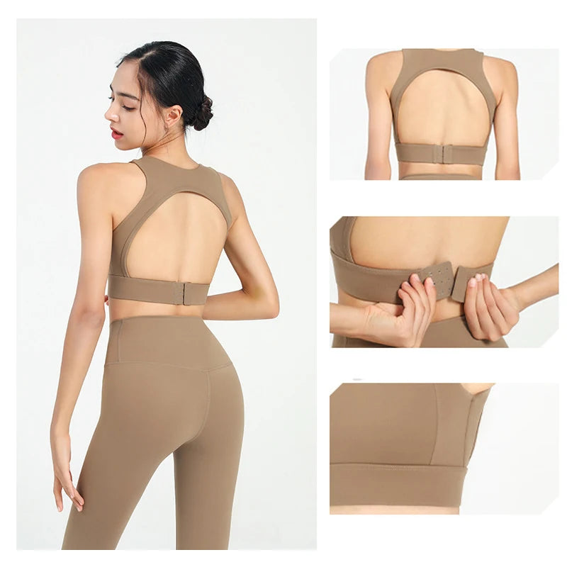 Stown Sportswear Women's Backless Sports and Leisure Bra Padded Adjustable Fitness Push Up Top High Support Yoga Wear for Ladies