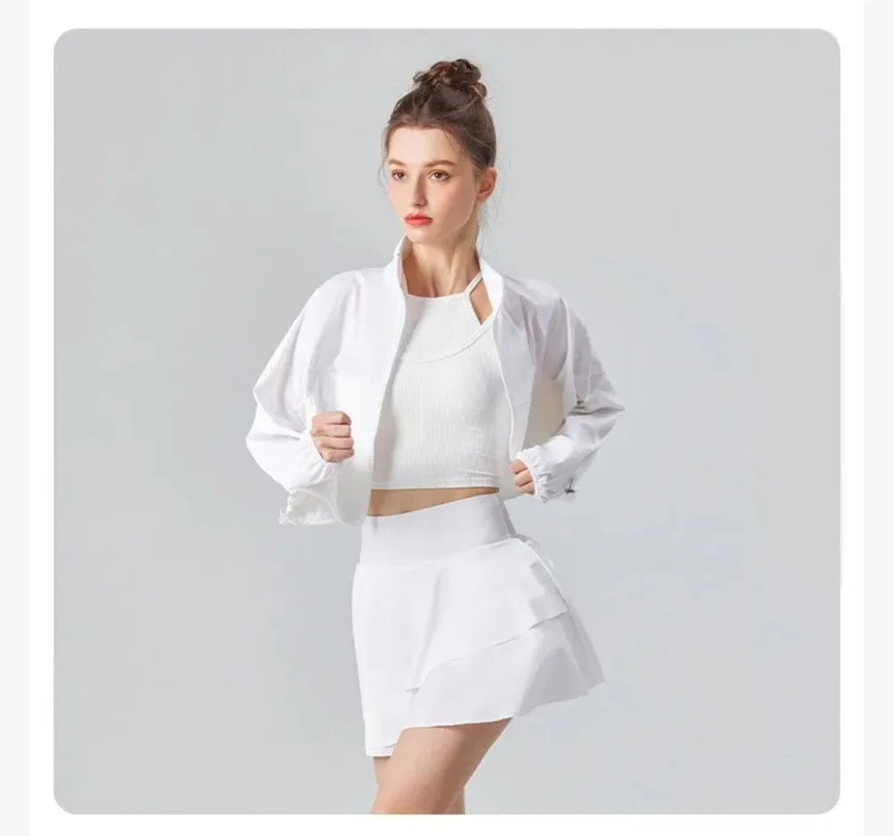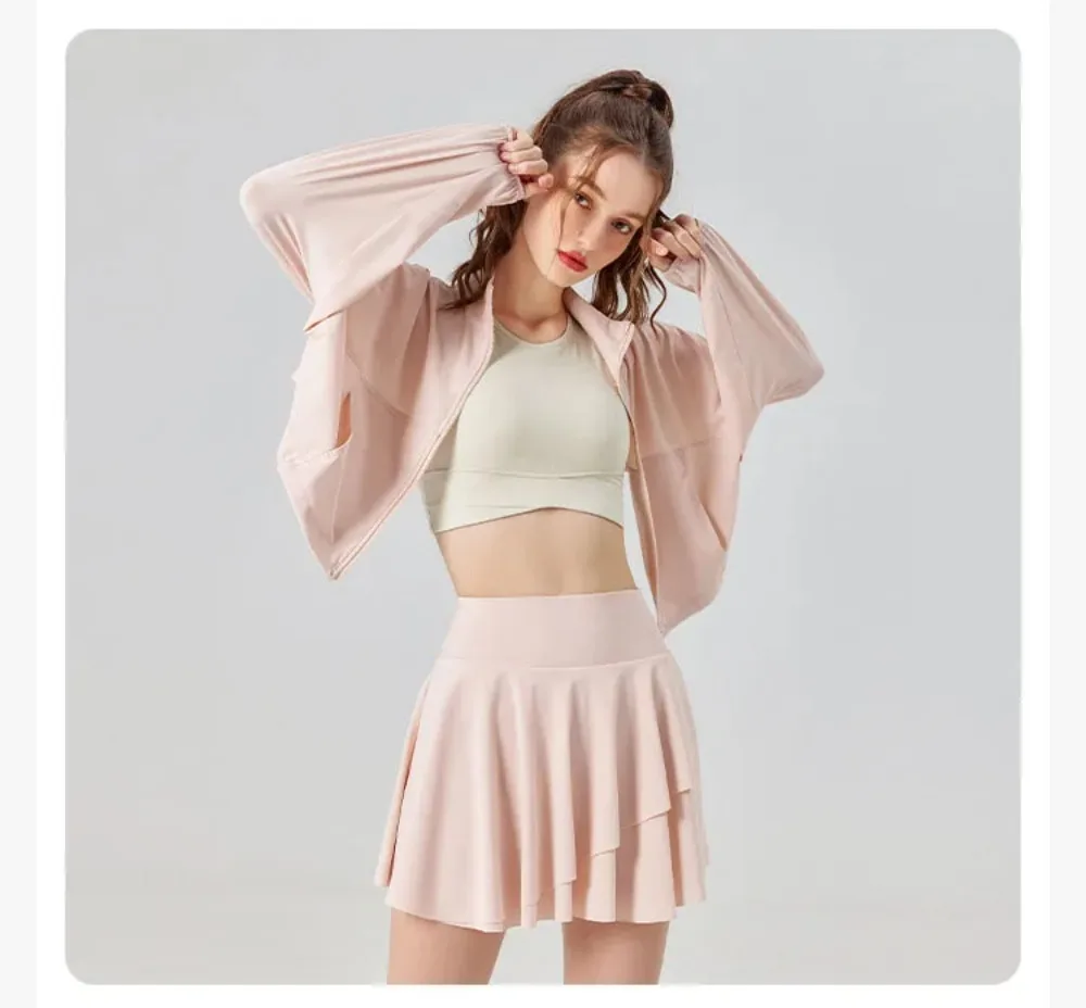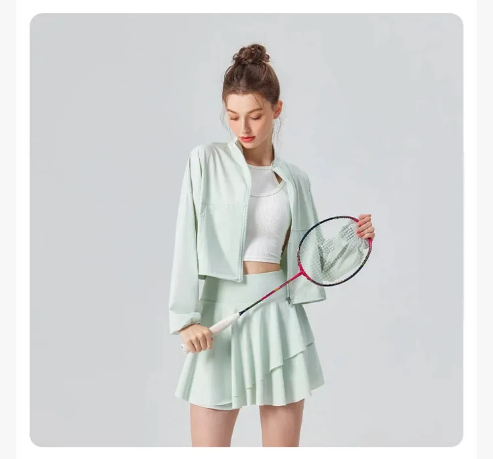 Sun Protection Women's Tennis Golf Sports Set Outdoor Workout Long Sleeve Jacket and Pleated Skirt 2 Piece Set