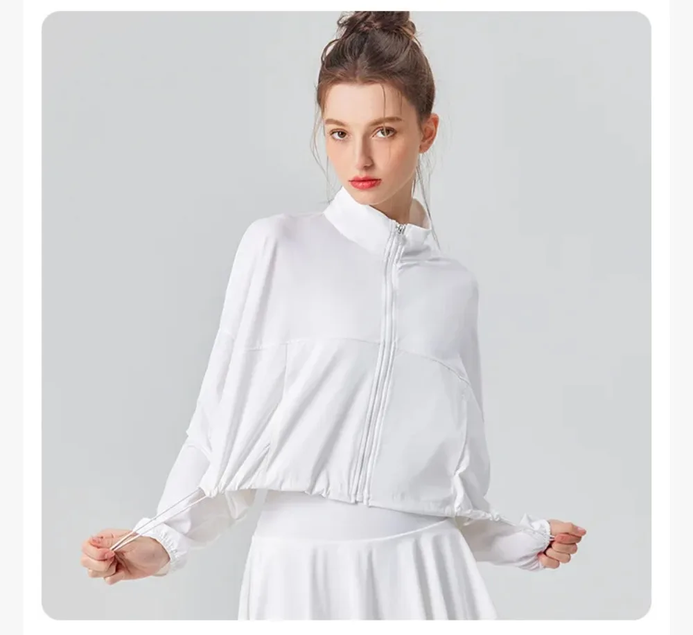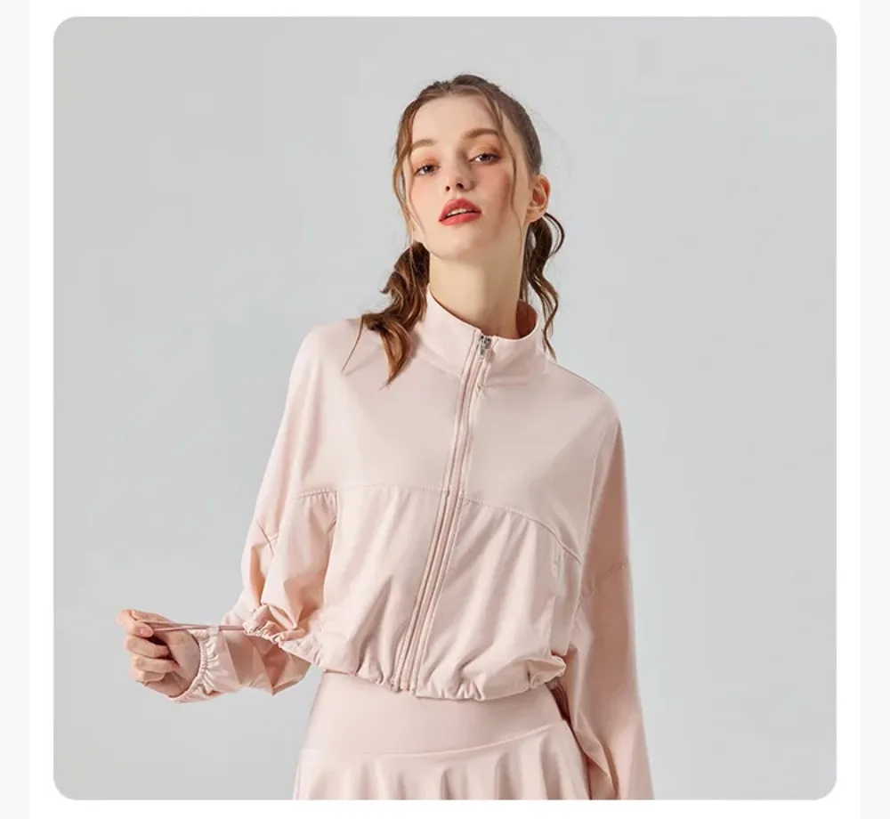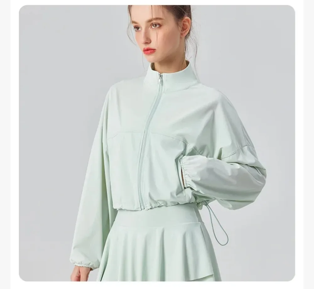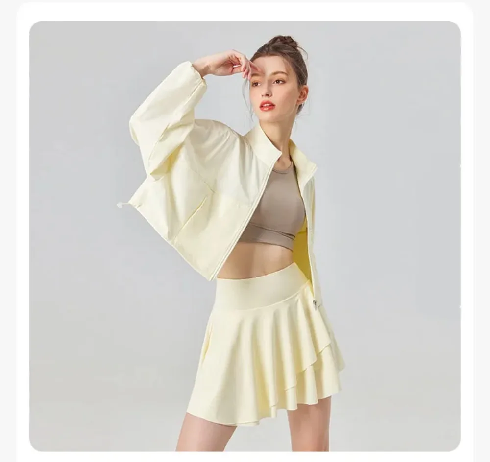 Sun Protection Women's Tennis Golf Sports Set Outdoor Workout Long Sleeve Jacket and Pleated Skirt 2 Piece Set