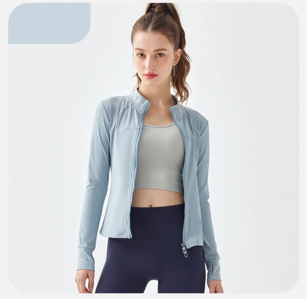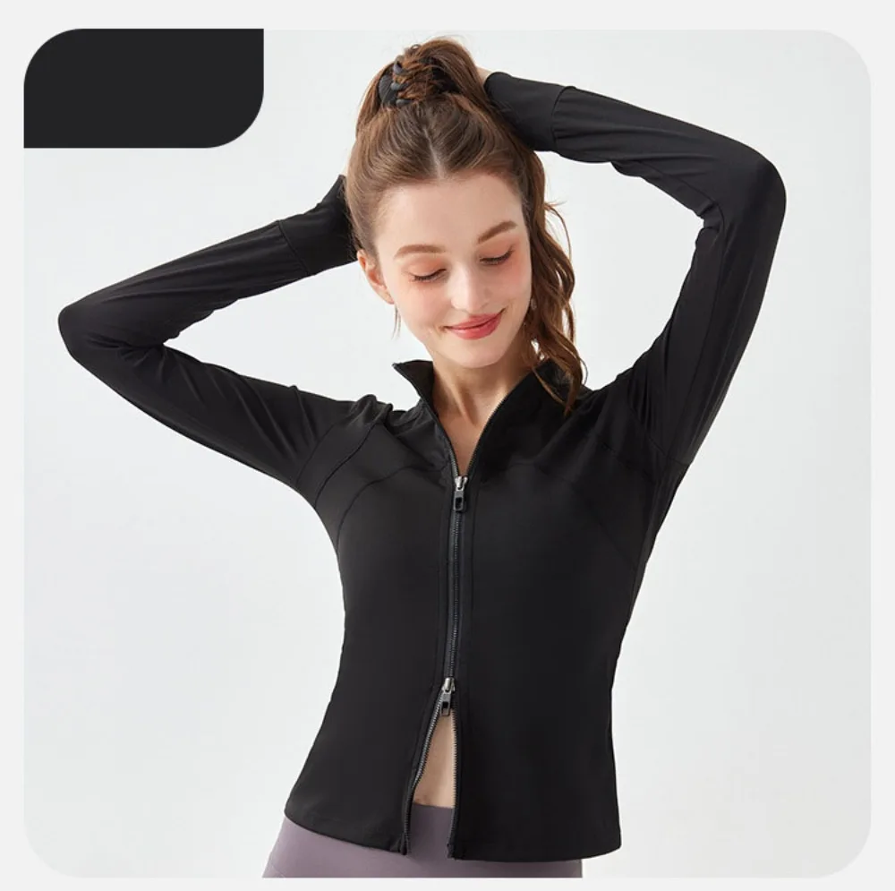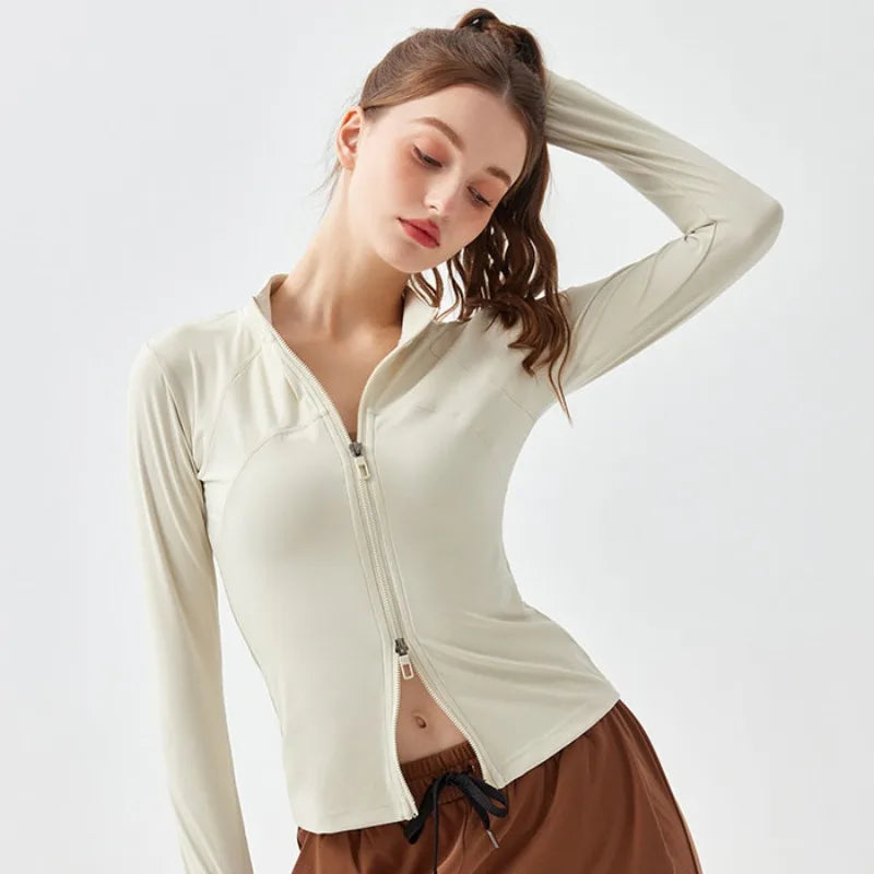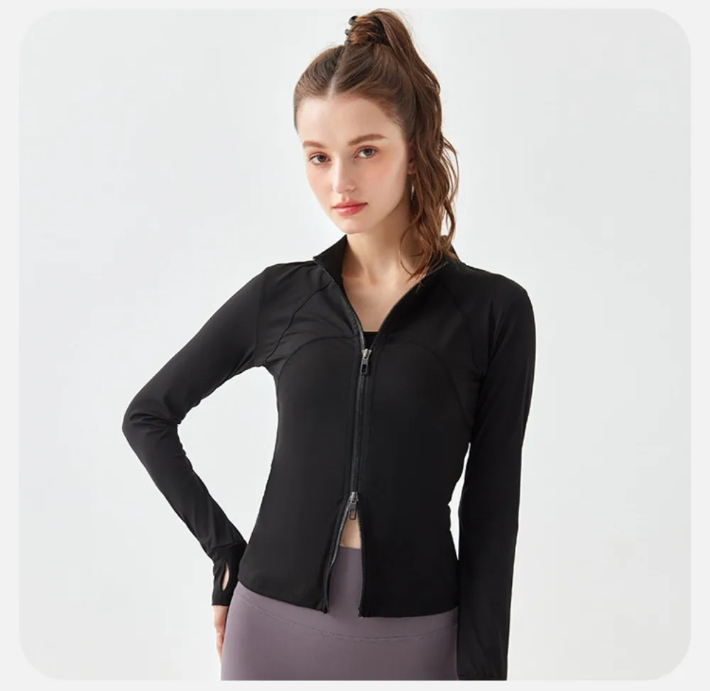Two-way Zipper Women's Long Sleeves Fitness Running Jacket with Breathable Fabric for Yoga and Morning Run