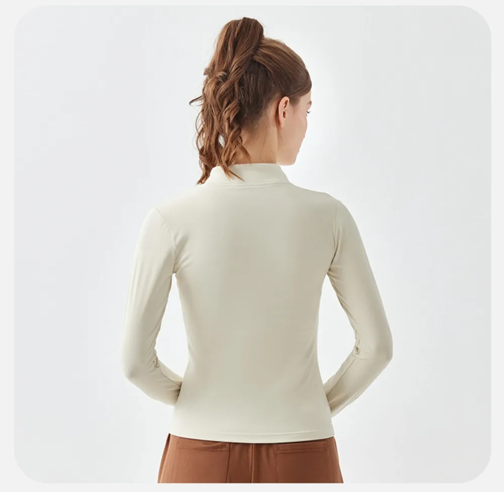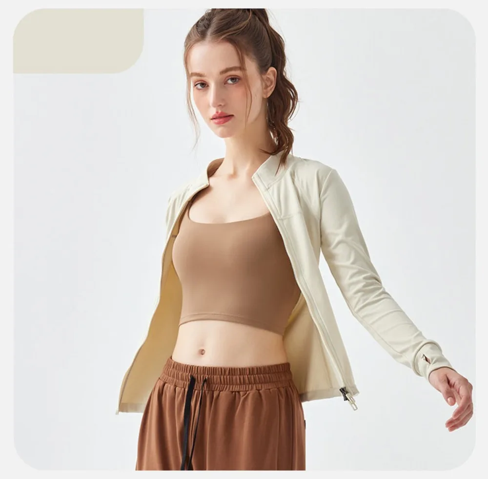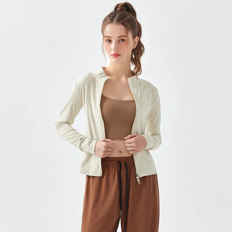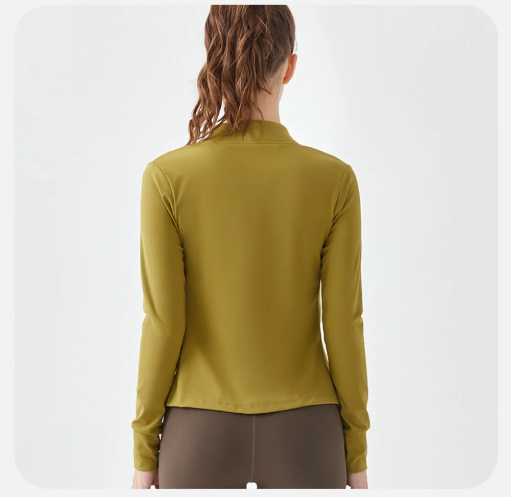 Two-way Zipper Women's Long Sleeves Fitness Running Jacket with Breathable Fabric for Yoga and Morning Run