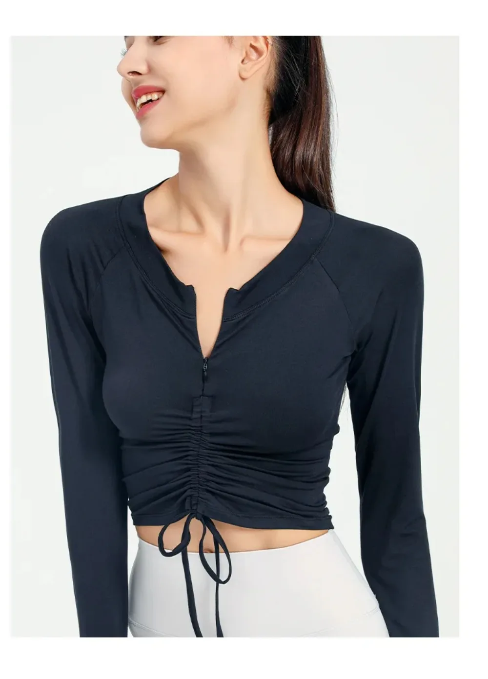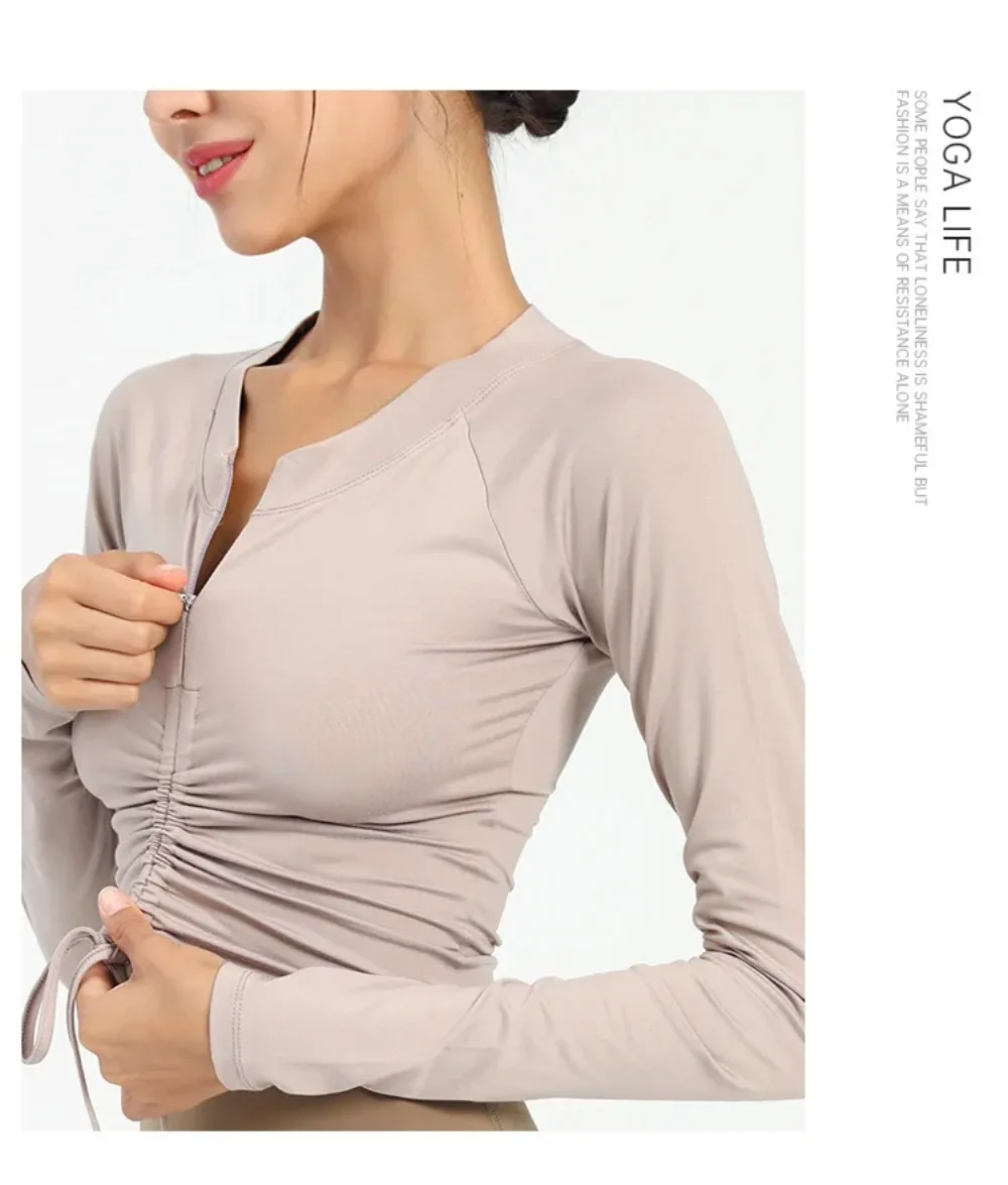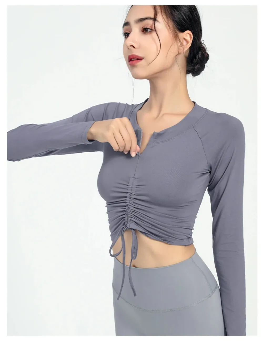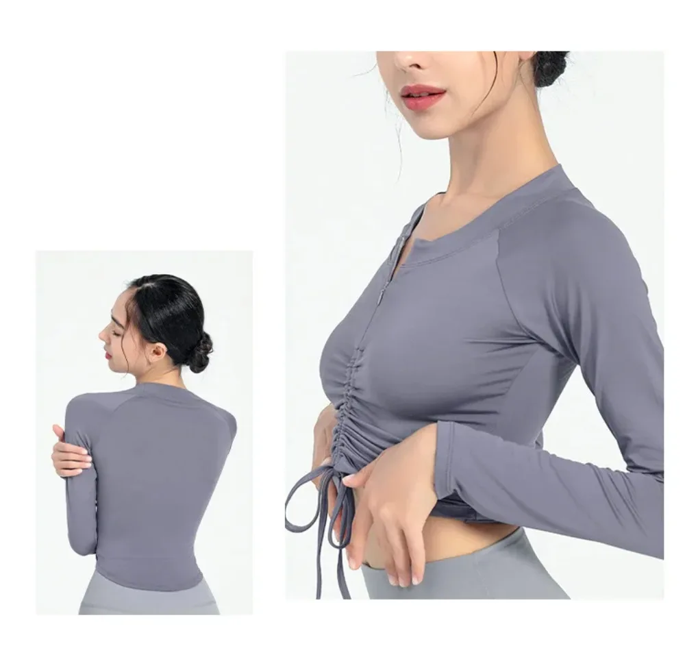 Long Sleeve Shirt Semi Zip Front Drawstring Yoga Tops Woman Sports Activewear Running Top for Fitness Female Blouse Gym Women
