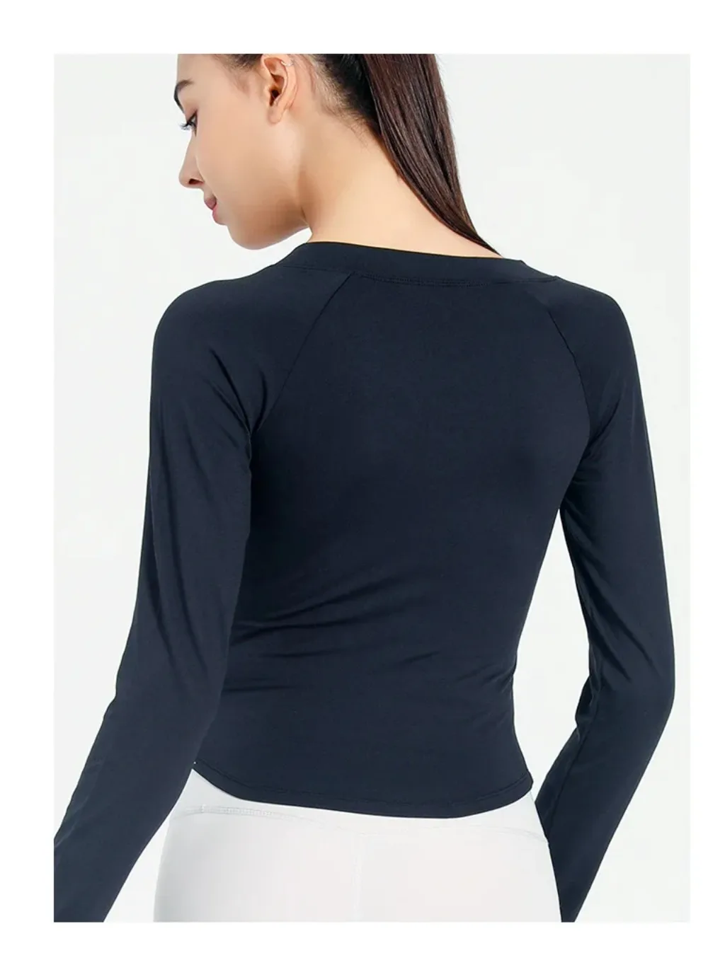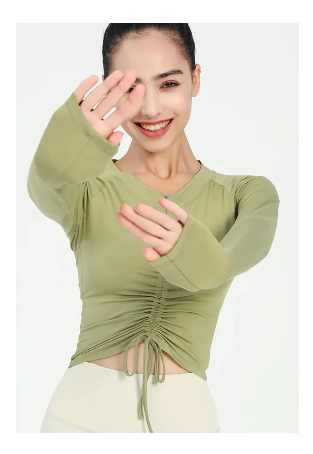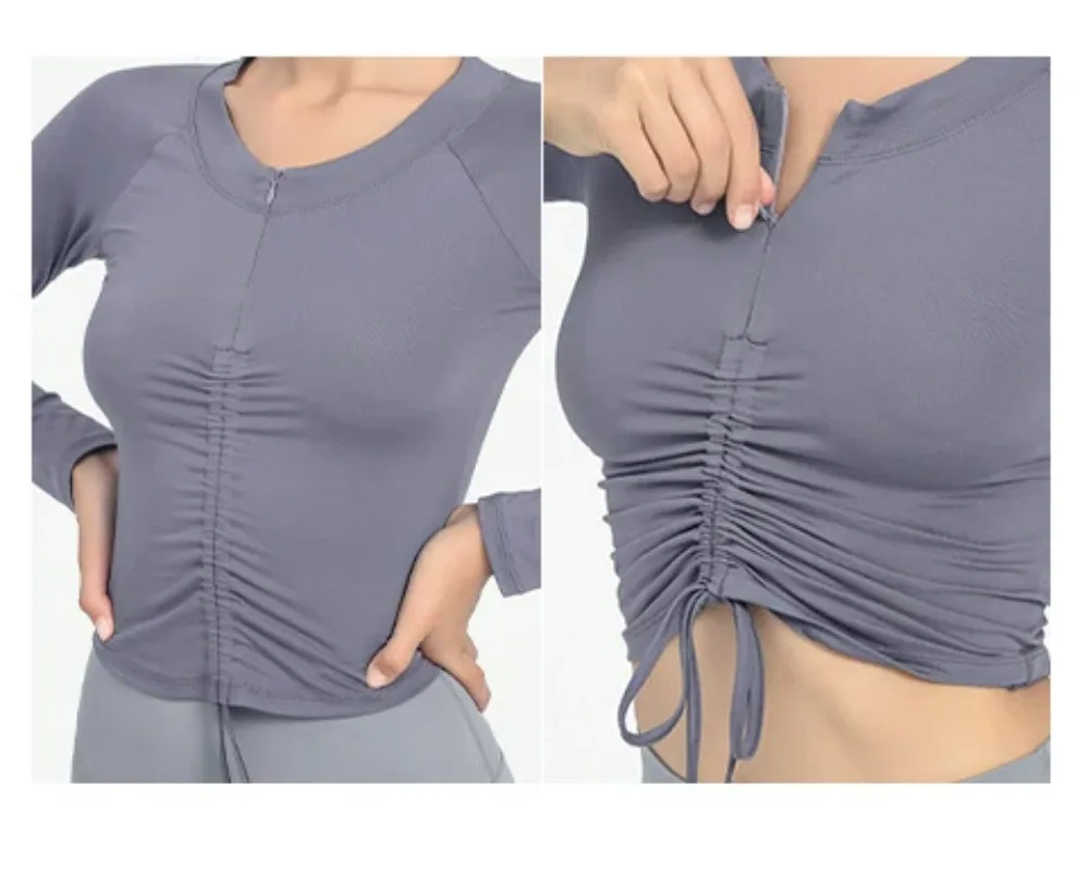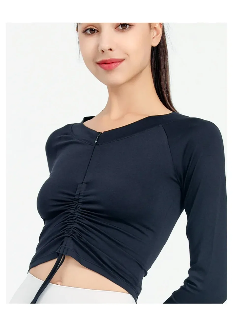Long Sleeve Shirt Semi Zip Front Drawstring Yoga Tops Woman Sports Activewear Running Top for Fitness Female Blouse Gym Women