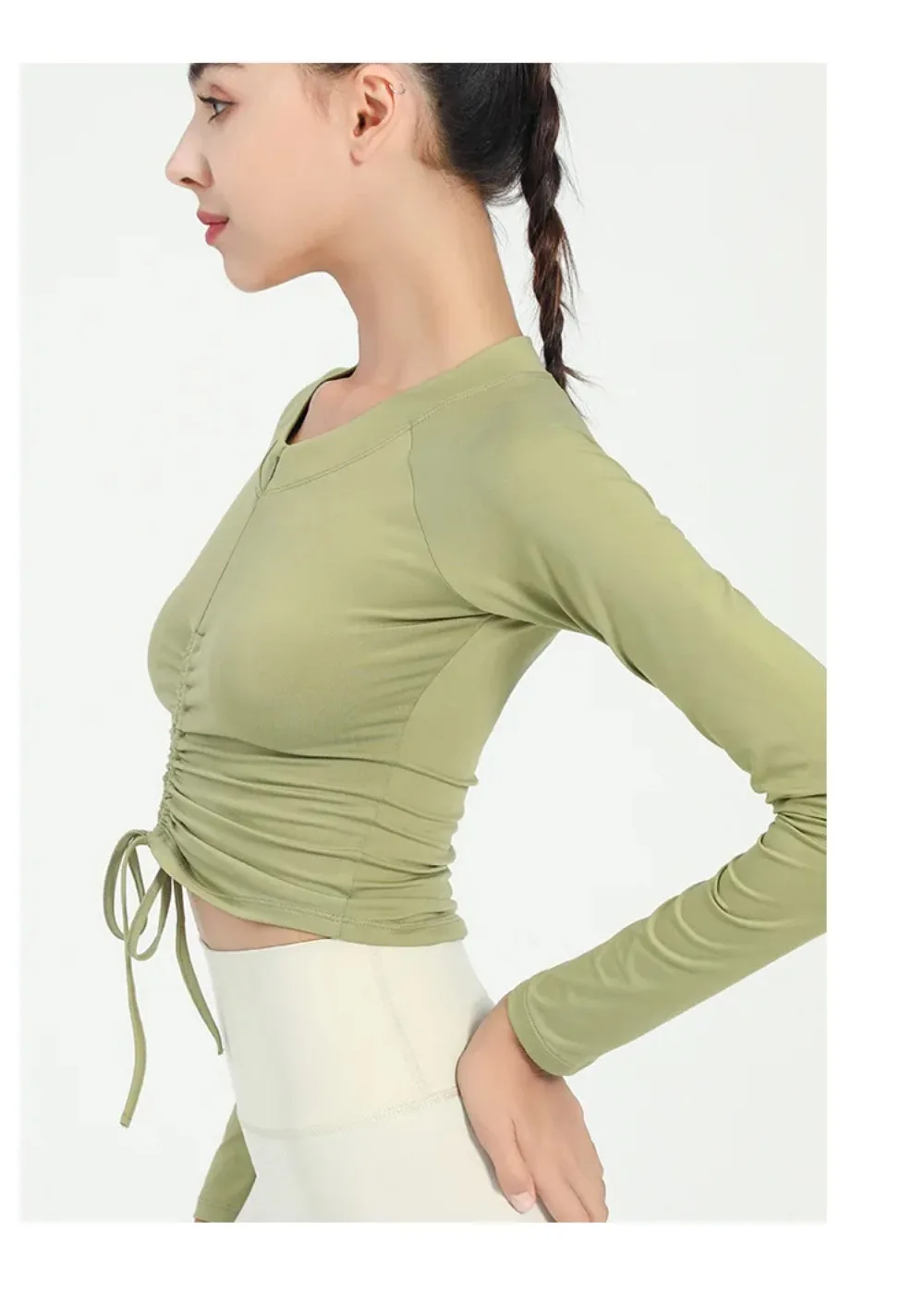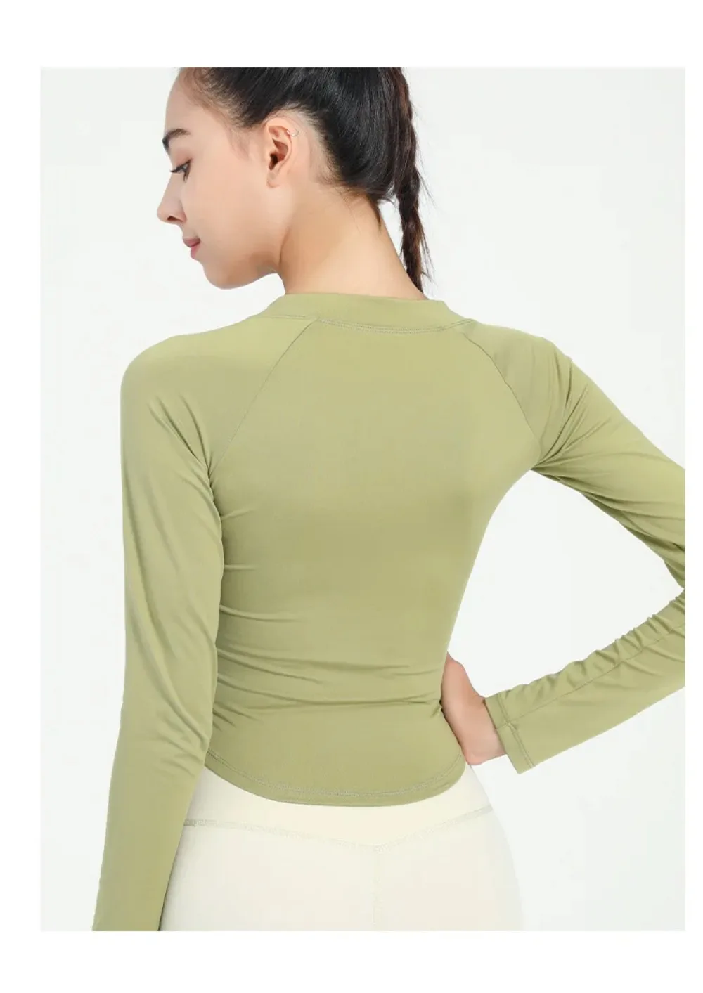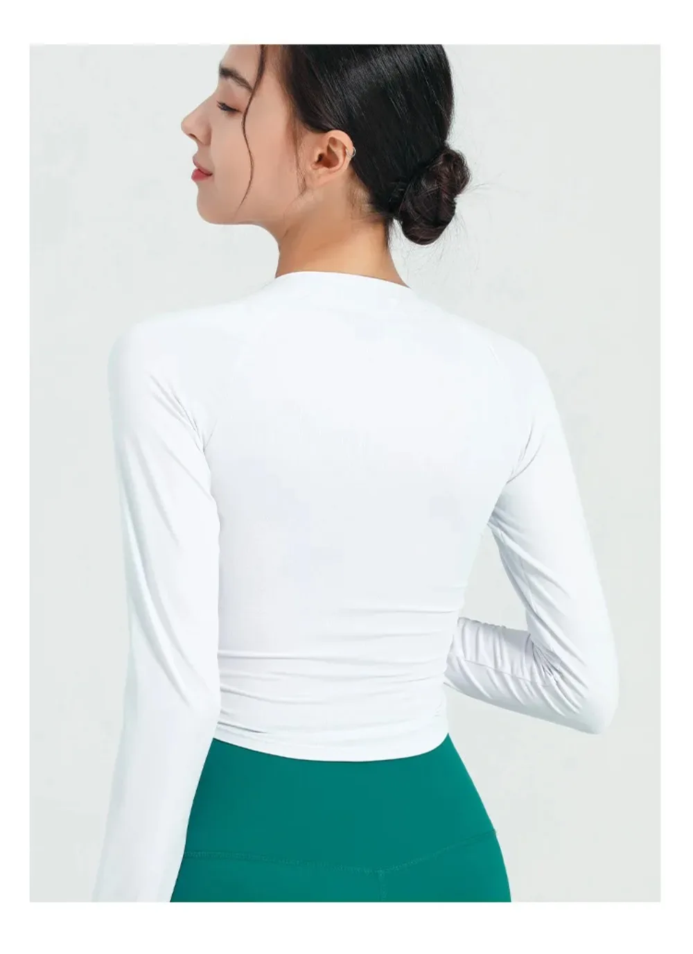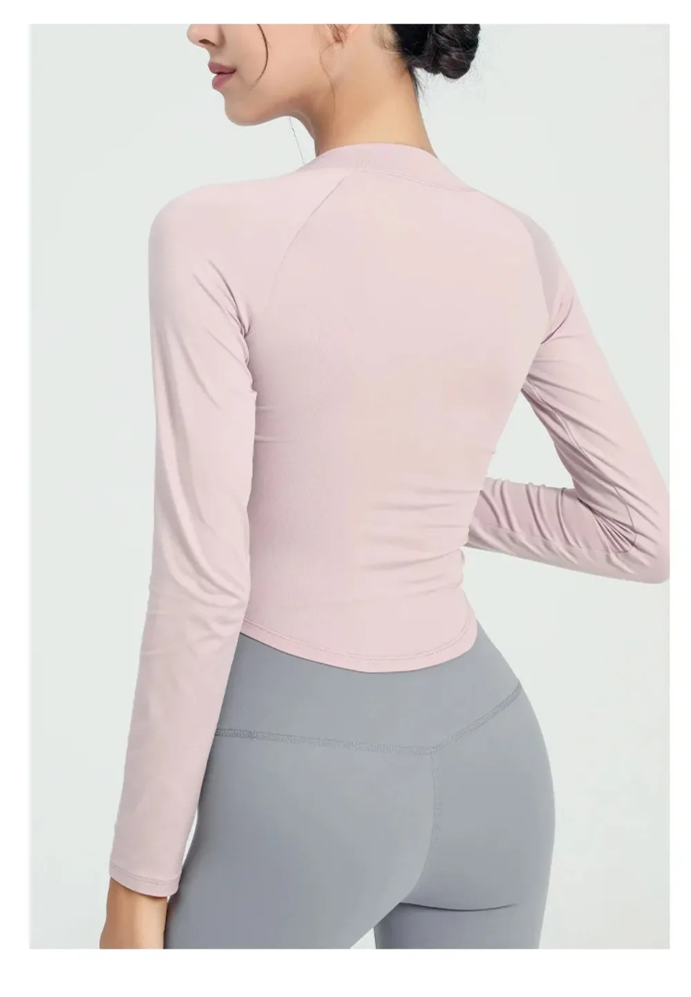 Long Sleeve Shirt Semi Zip Front Drawstring Yoga Tops Woman Sports Activewear Running Top for Fitness Female Blouse Gym Women