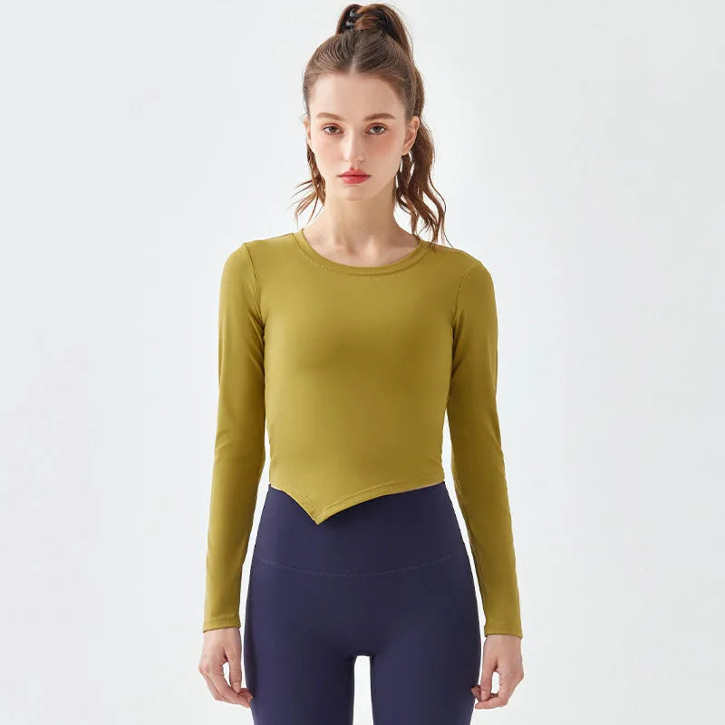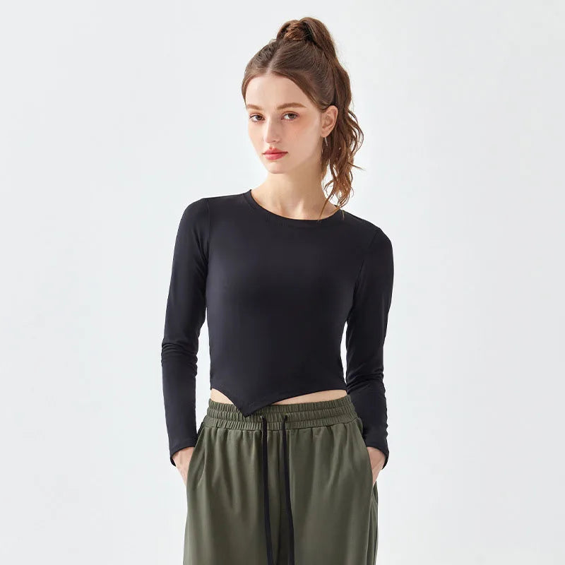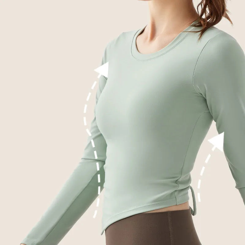 Asymmetric Long Sleeve Shirt with Drawstring