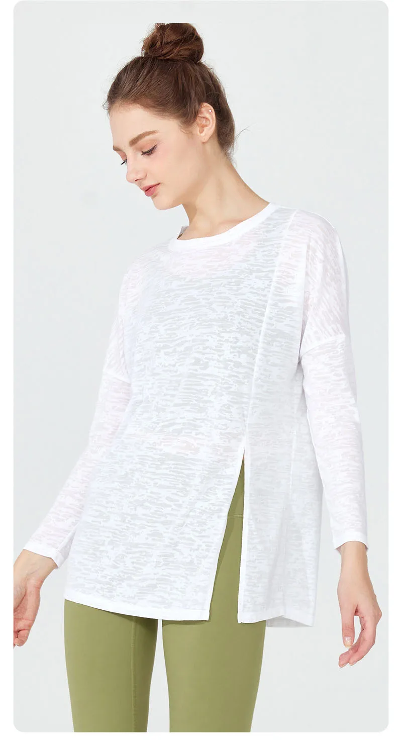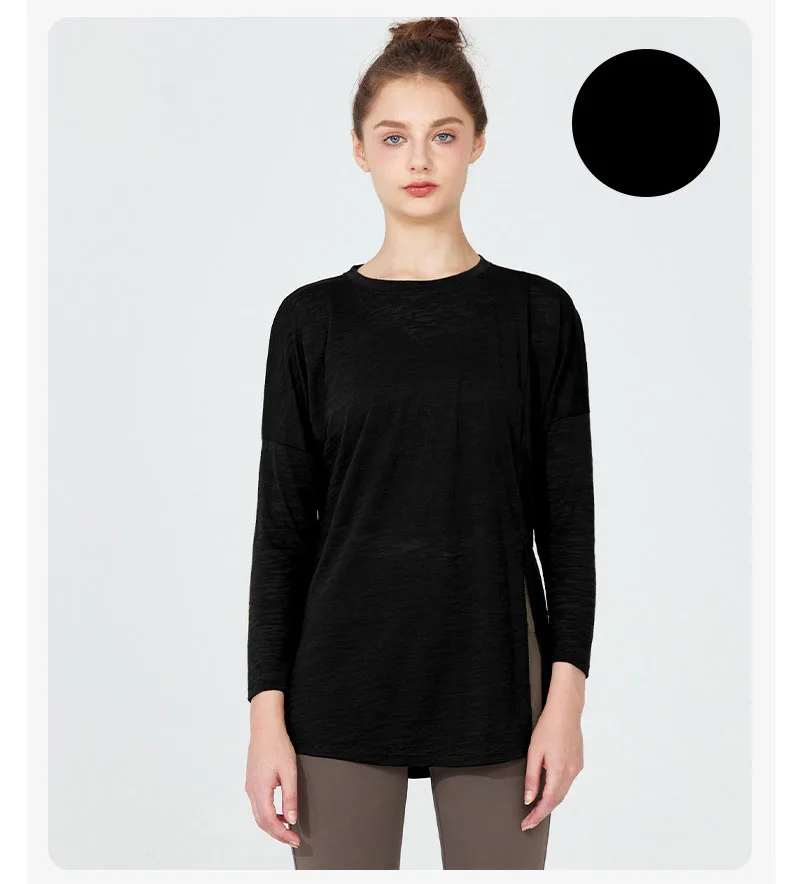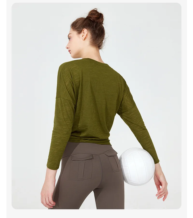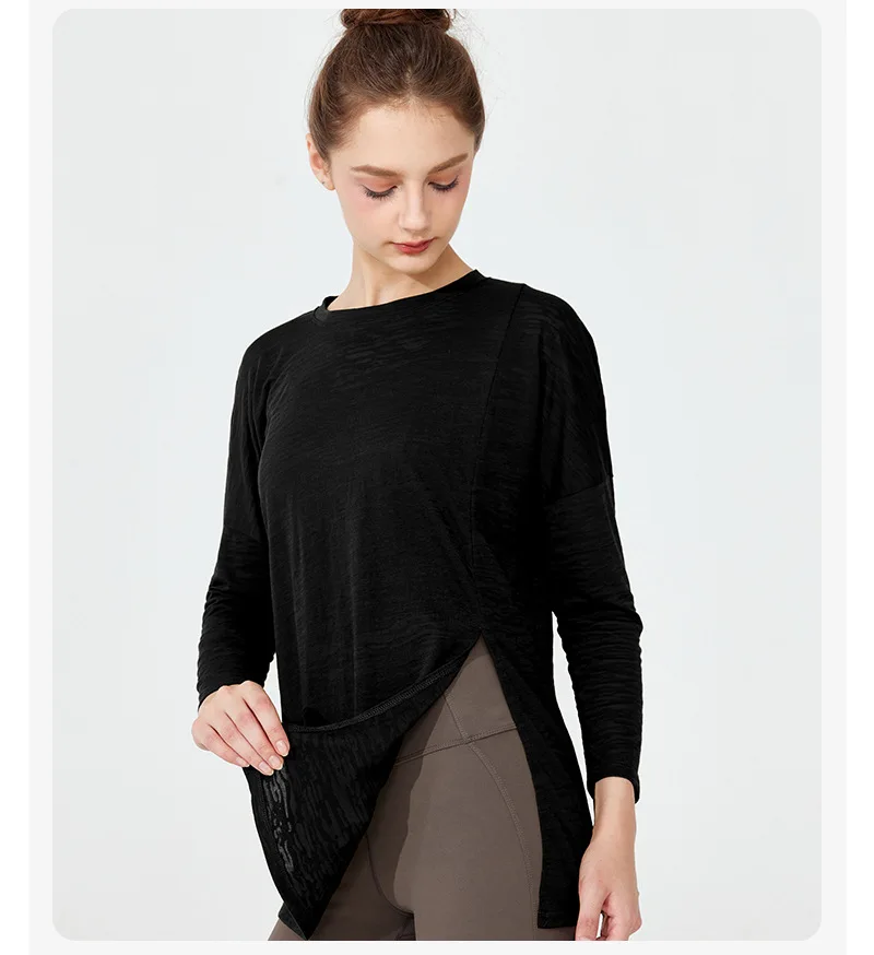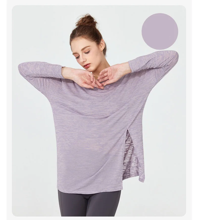 Loose Fit Long Sleeve Yoga Shirt, Training and Exercise Athletic Tops Gym Women's Sportswear for Chubby