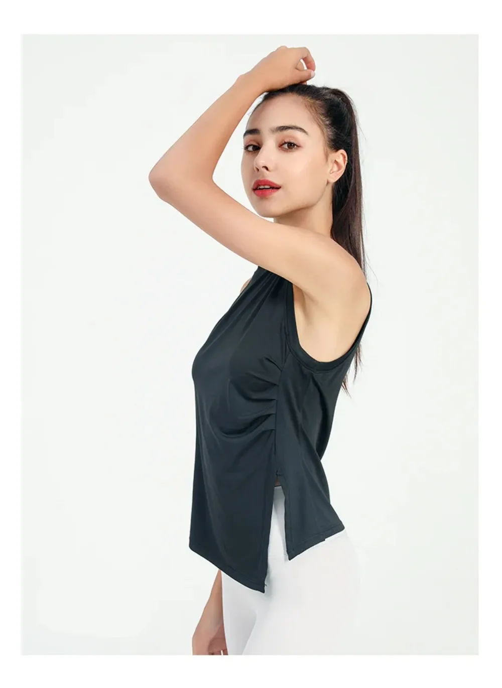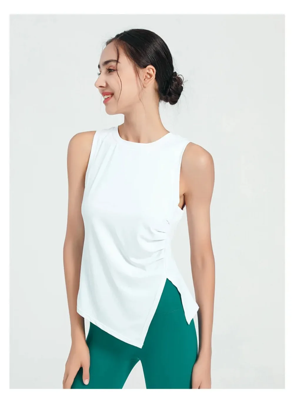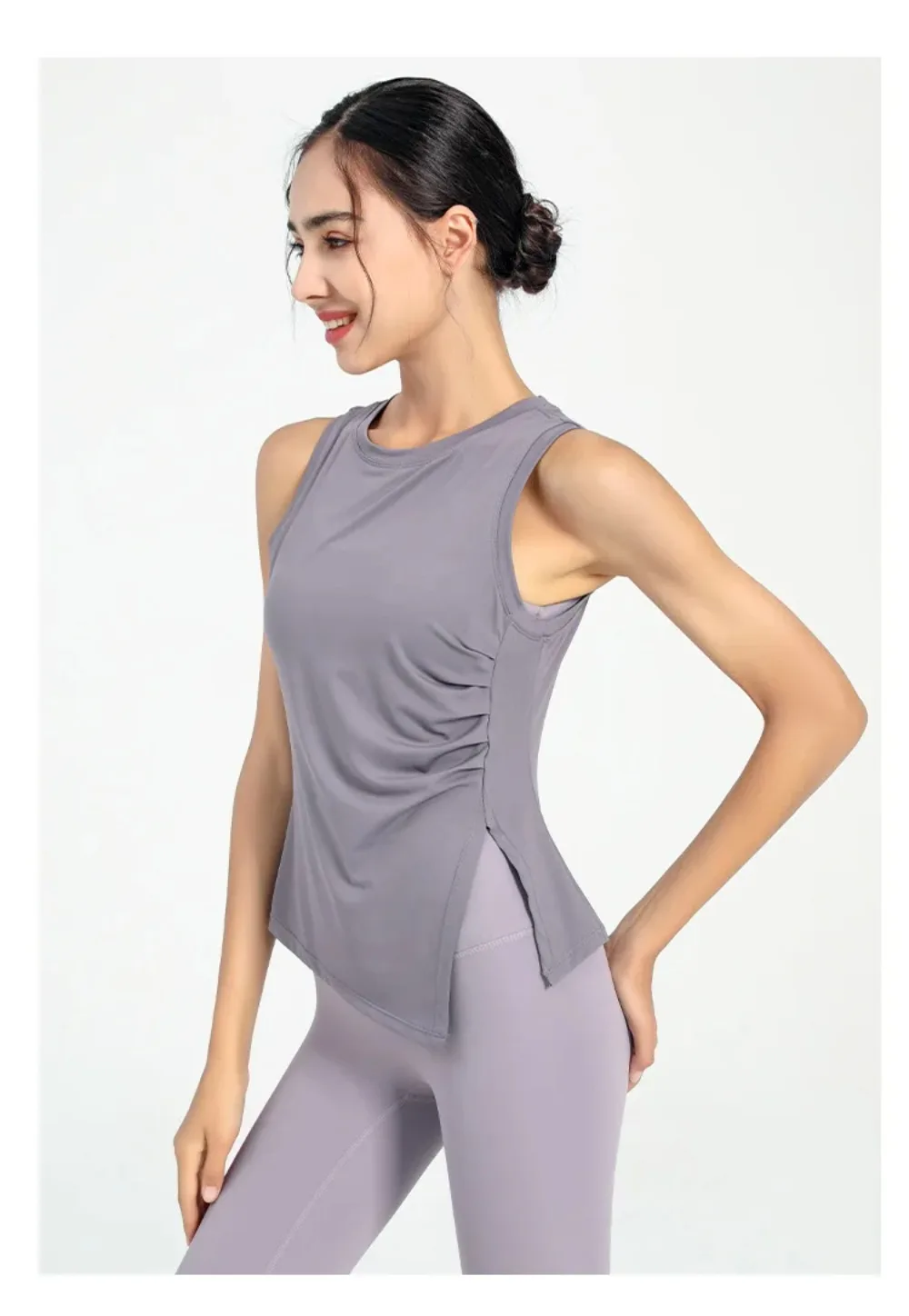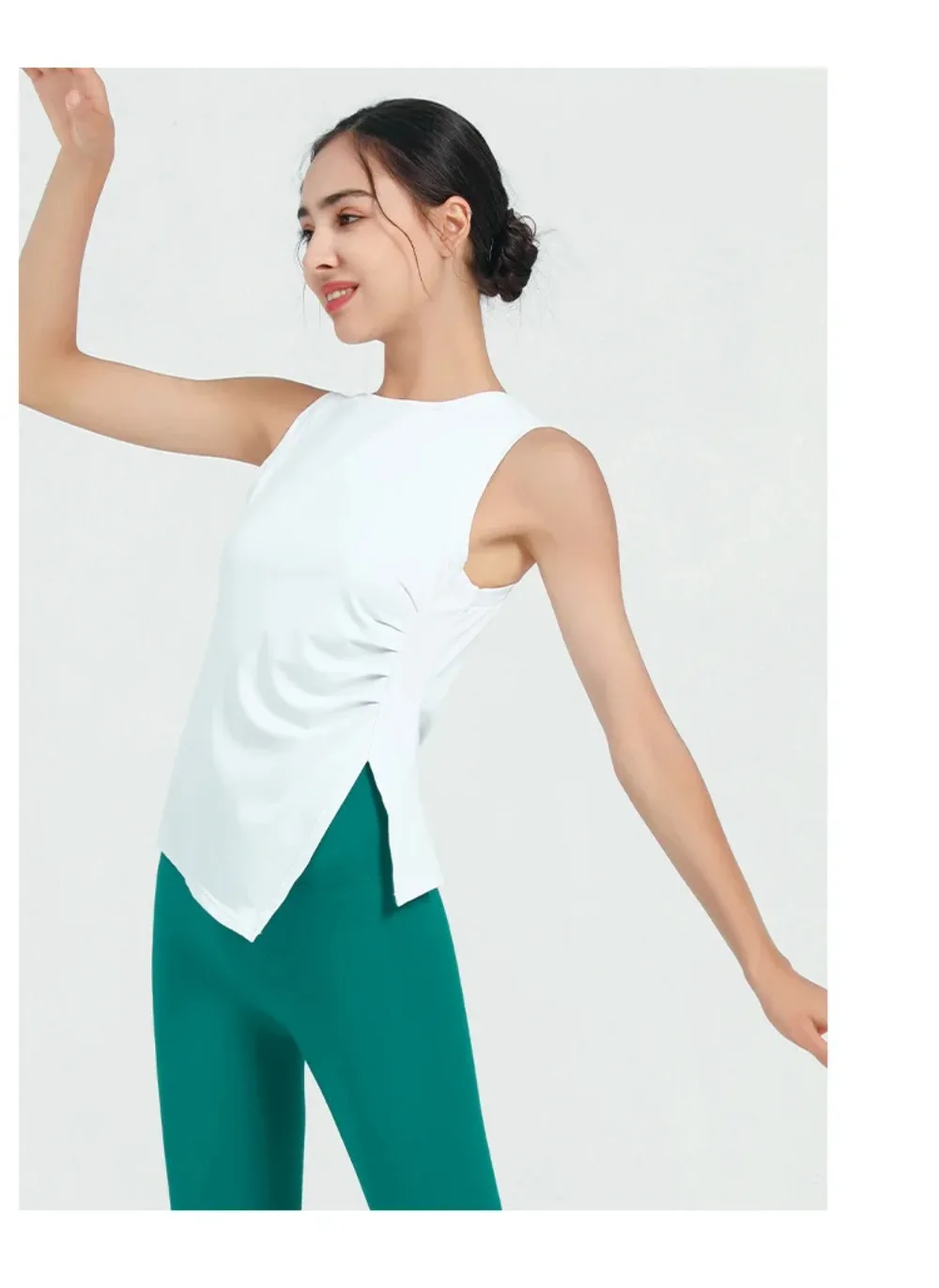 Slit Women's Sports Vest High Stretchy Yoga Pilates Cropped Vest Top for Fitness Workout BreathableTank Top Female Sportswear