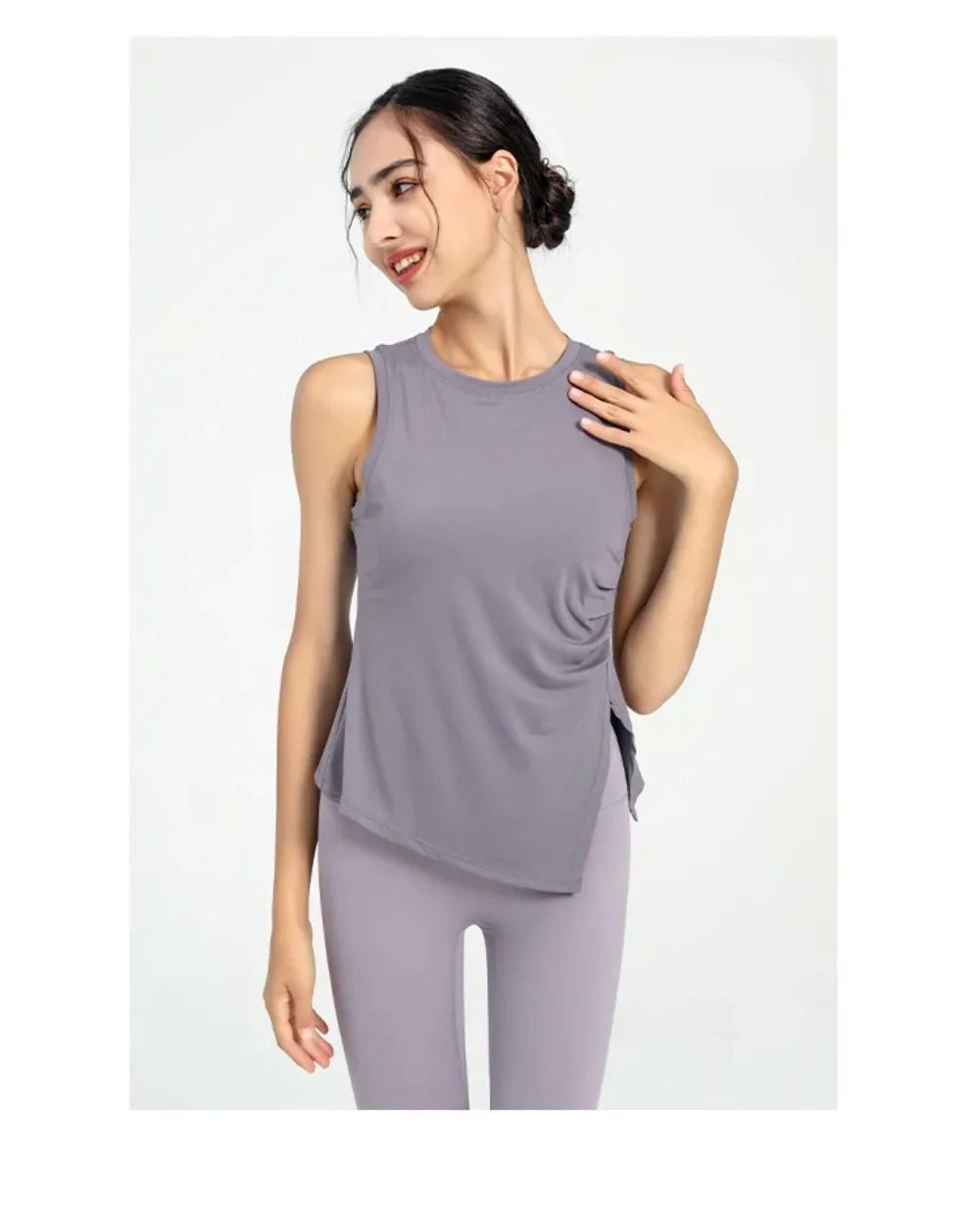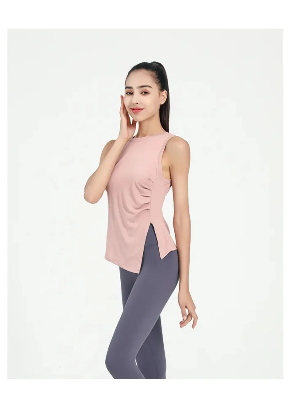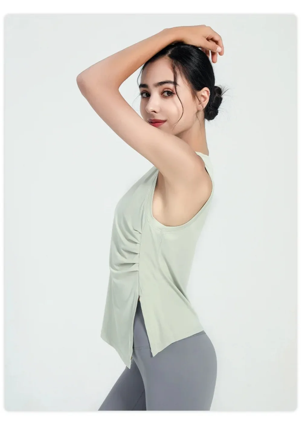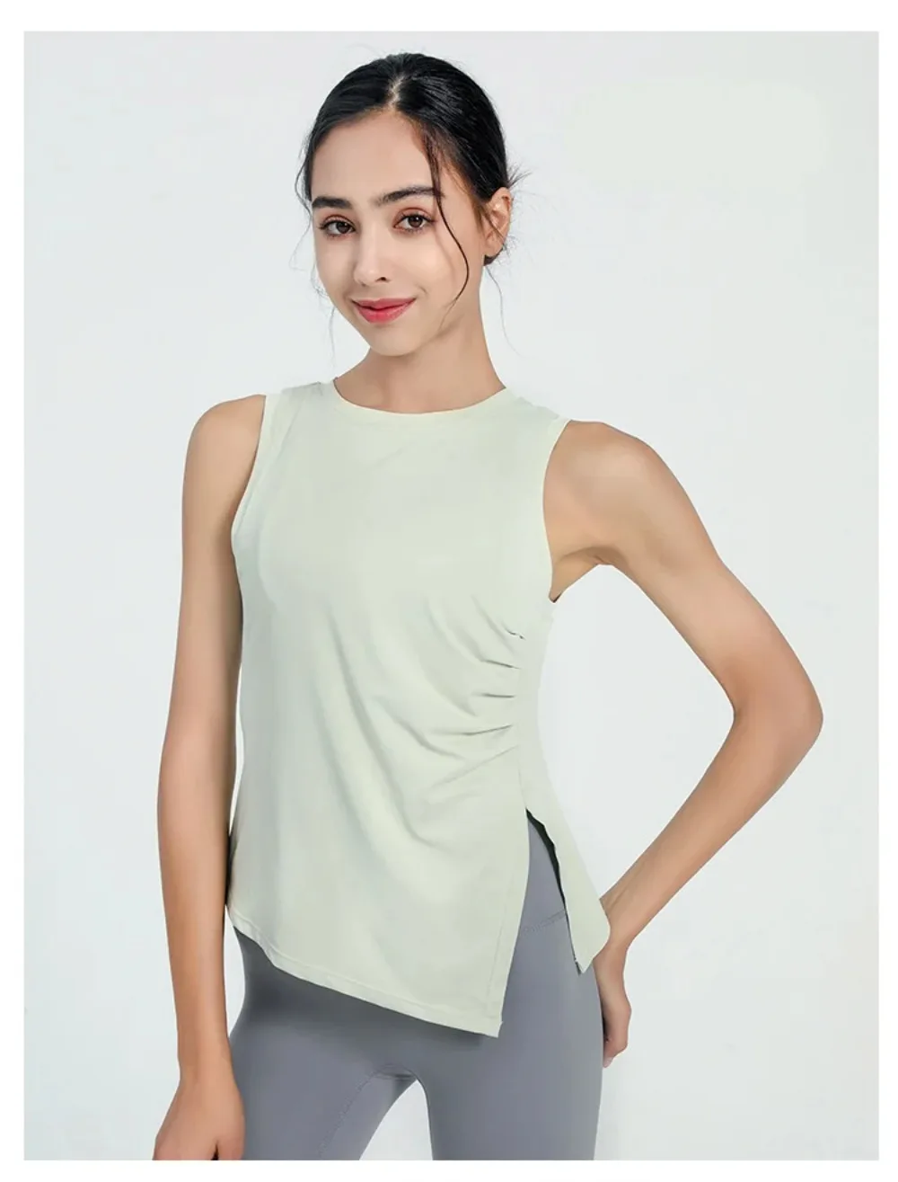 Slit Women's Sports Vest High Stretchy Yoga Pilates Cropped Vest Top for Fitness Workout BreathableTank Top Female Sportswear