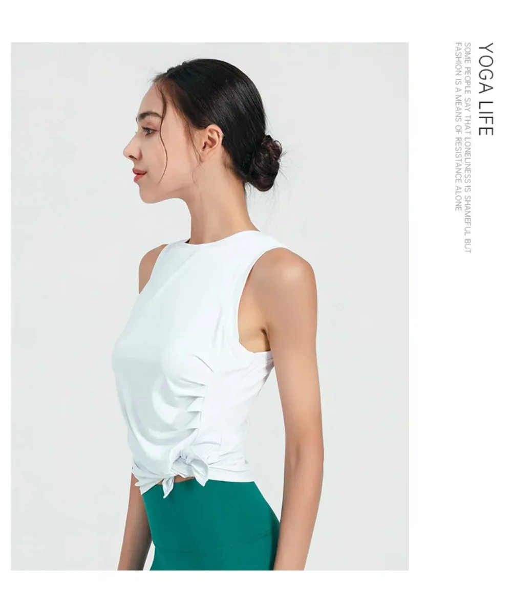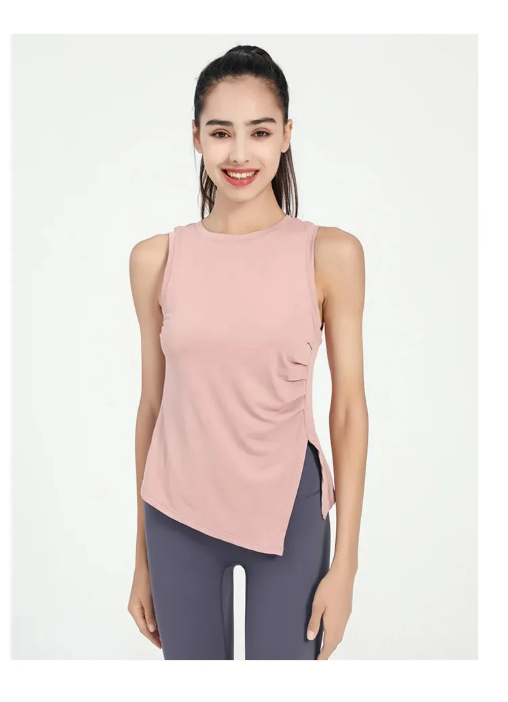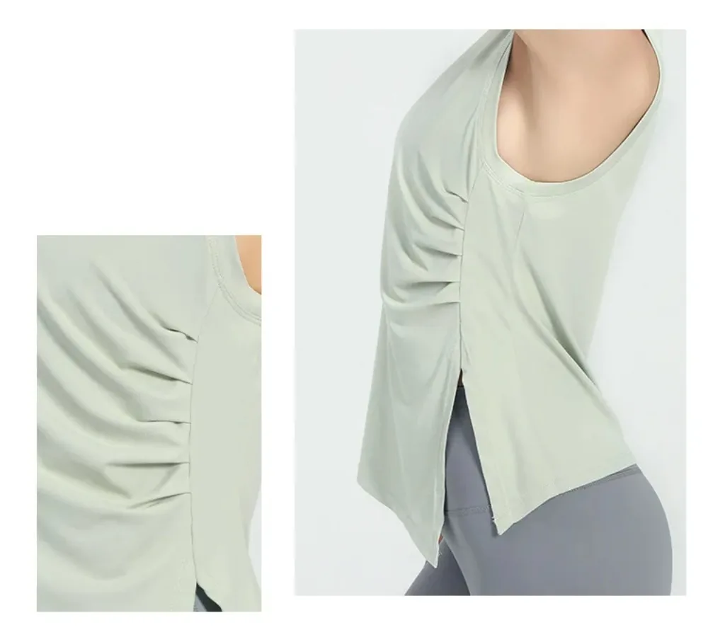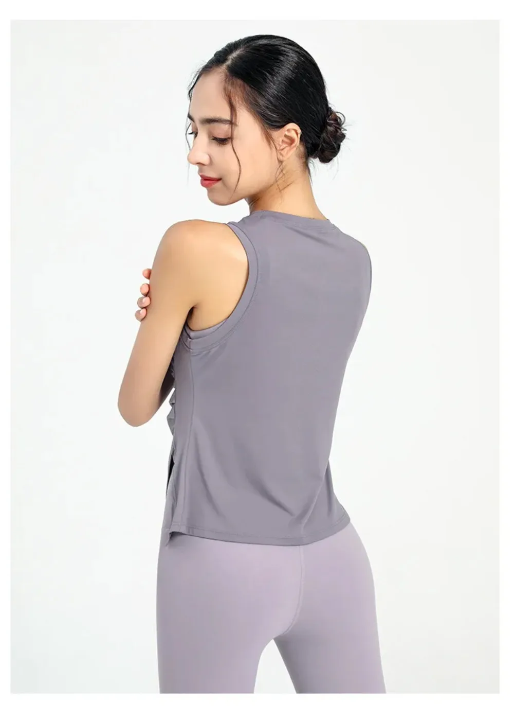 Slit Women's Sports Vest High Stretchy Yoga Pilates Cropped Vest Top for Fitness Workout BreathableTank Top Female Sportswear