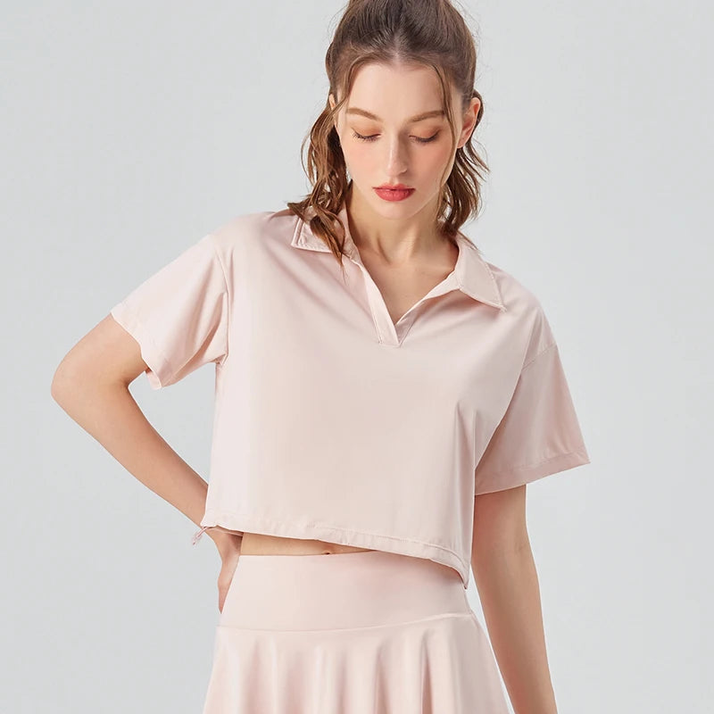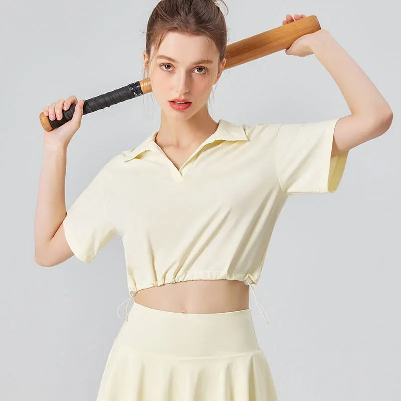 2023 Summer Short Sleeves Yoga Shirt for Women, UPF50+ Sun Protection Quick-Dry Golf Top, High Neck Workout Tennis Tee
